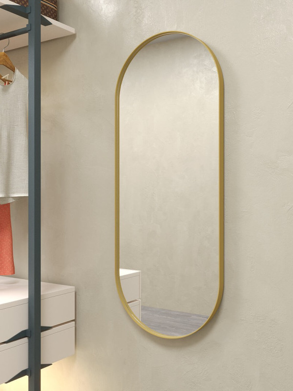Дизайнерское овальное настенное зеркало Glass Memory Harmony в металлической раме золотого цвета в Кунгуре