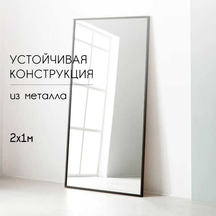 Зеркало «Parallax». Артикул GMZ-8-2-1/2/3 Большое зеркало в полный рост, которое с уверенностью можно назвать парадным. Простая прямоугольная форма без каких-либо излишеств позволяет использовать это зеркало в любых помещениях, оформленных в каких угодно стилях. Оно способно кардинально преображать пространство визуально расширяя его рамки и наполняя светом. Рама изготовлена из прочного металла, придаёт конструкции устойчивость и надёжность. Зеркальное полотно высокого качества, является продукцией известного бельгийского бренда AGC. Зеркало можно использовать как в напольном, так и настенном вариантах. Для крепежа на стену на обратной стороне рамы имеются крепёжные элементы.Характеристики:– габаритные размеры – 2000х1000х20 мм, металлический профиль – квадрат 20х20 мм;